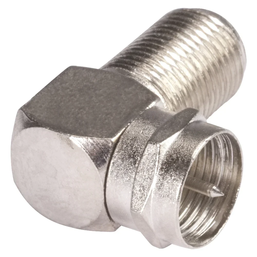 Der F-Antennen-Adapter ist im Metallgehäuse 90° abgewinkelt und ermöglicht die Verbindung von F female zu F male.