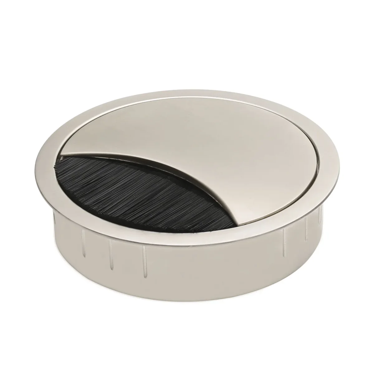 Lassen Sie mit unserer schlichten und modernen Kabeldurchführung störende Leitungen auf Ihrem Schreibtisch schnell und unkompliziert verschwinden. Eine einfache Standard-Ausbohrung mit 80 mm Durchmesser reicht aus und Sie haben geordnete Verhältnisse – zumindest in Sachen Kabelverbindungen. Der halbmondförmige Ausschnitt bietet ausreichend Platz für mehrere Kabel und ist mit einer integrierten Bürstenleiste abgedeckt und geschützt.