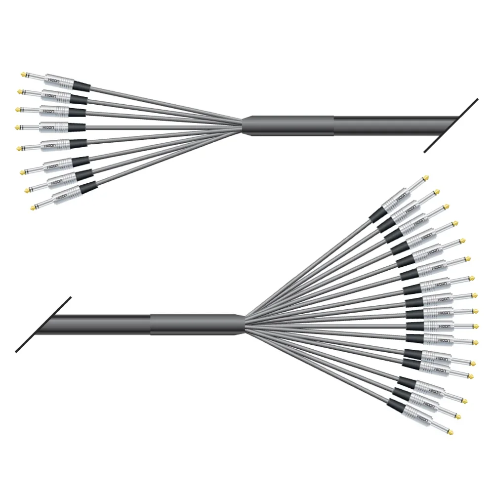 Die folgenden Kabel sind spezielle Insert Looms für Mischpulte mit unsymmetrischen Inserts, d.h. Send und Return sind auf einer gemeinsamen Stereoklinkenbuchse im Mischpult vorhanden. Um diese dann mit einem Effektgerät zu verbinden, muss man das Signal auf 2 einzelne Stecker verteilen. Genau das machen unsere Looms. Dies bedeutet unweigerlich, dass auf einer Seite z.B. 8 Stereoklinken sind, auf der anderen Seiten dann passend dazu 16 Monoklinken. Oder die andere Seite ist mit 8 XLR male und 8 XLR female versehen.