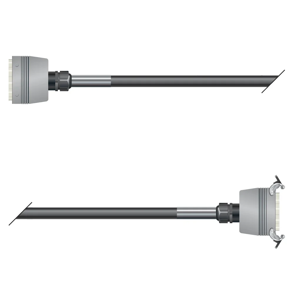 Wir verwenden unsere hochflexible Multipair-Leitung PLANET FMC mit einzelisolierten und geschirmten Adernpaaren. Als Steckverbinder setzen wir zwei Multipinbuchsen von ILME ohne Verriegelung ein, die kompatibel sind zu allen marktgängigen Rechteck-Verbindern (Harting usw.). Die Multipin-Buchsen sind sowohl in gerader als auch in abgewinkelter Bauform erhältlich. Unsere Standard-Belegung, die wir für die zentrale Masseführung zu Grunde legen, finden Sie unter www.sommercable.com/support.