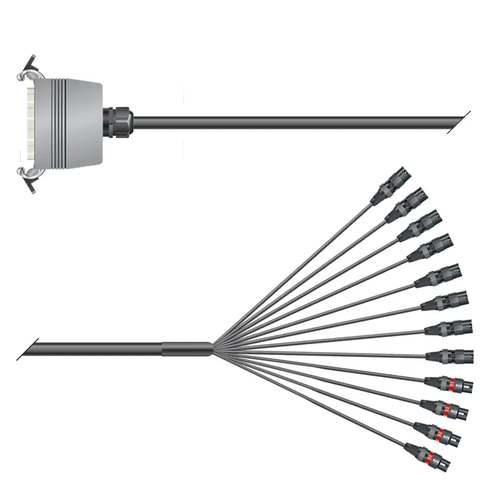 Zum Bau der folgenden Spleisse verwenden wir unser hochflexibles Multipair-Kabel PLANET mit einzelisolierten und geschirmten Adernpaaren. Auf der XLR-Seite kommen hochwertige Steckverbinder mit Nummerierungsring von HICON und NEUTRIK® zum Einsatz; alternativ liefern wir eine Variante mit Returns als NEUTRIK® Convertcons.