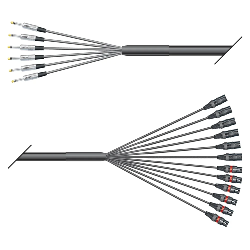 Die folgenden Kabel sind spezielle Insert Looms für Mischpulte mit unsymmetrischen Inserts, d.h. Send und Return sind auf einer gemeinsamen Stereoklinkenbuchse im Mischpult vorhanden. Um diese dann mit einem Effektgerät zu verbinden, muss man das Signal auf 2 einzelne Stecker verteilen. Genau das machen unsere Looms. Dies bedeutet unweigerlich, dass auf einer Seite z.B. 8 Stereoklinken sind, auf der anderen Seiten dann passend dazu 16 Monoklinken. Oder die andere Seite ist mit 8 XLR male und 8 XLR female versehen.