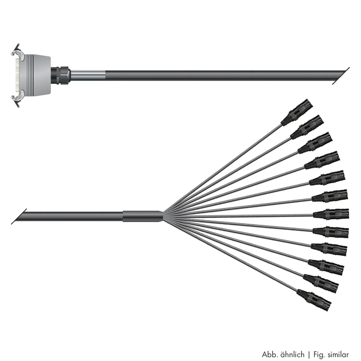 Zum Bau der folgenden Spleisse verwenden wir unser hochflexibles Multipair-Kabel PLANET mit einzelisolierten und geschirmten Adernpaaren. Auf der XLR-Seite kommen hochwertige Steckverbinder mit Nummerierungsring von HICON und NEUTRIK® zum Einsatz; alternativ liefern wir eine Variante mit Returns als NEUTRIK® Convertcons.