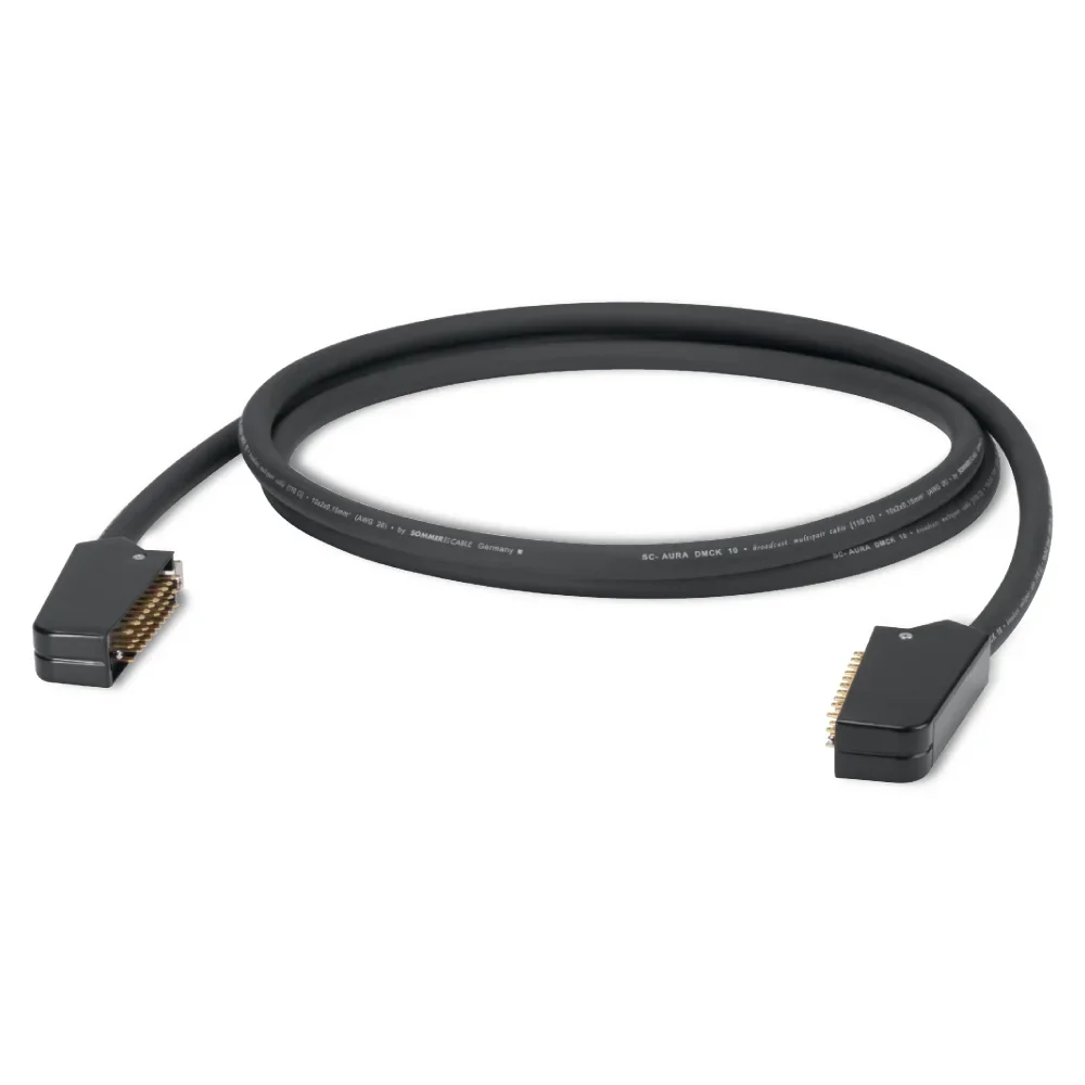 Wir verwenden unser hochflexibles 10-paariges AES/EBU Multipair SC-AURA DMCK (Paare einzeln isoliert, Kreuzgeflechtschirm) oder das robuste 12-paarige TRANSFER HIGHFLEX mit PurMasterBlend-Mantel zusammen mit den – im Broadcast-Bereich sehr verbreiteten – 30- bzw 39-pol Messer- & Federleisten-Steckverbindern nach DIN 41622/41618 (oftmals mit „Siemens Messerleiste” bezeichnet).