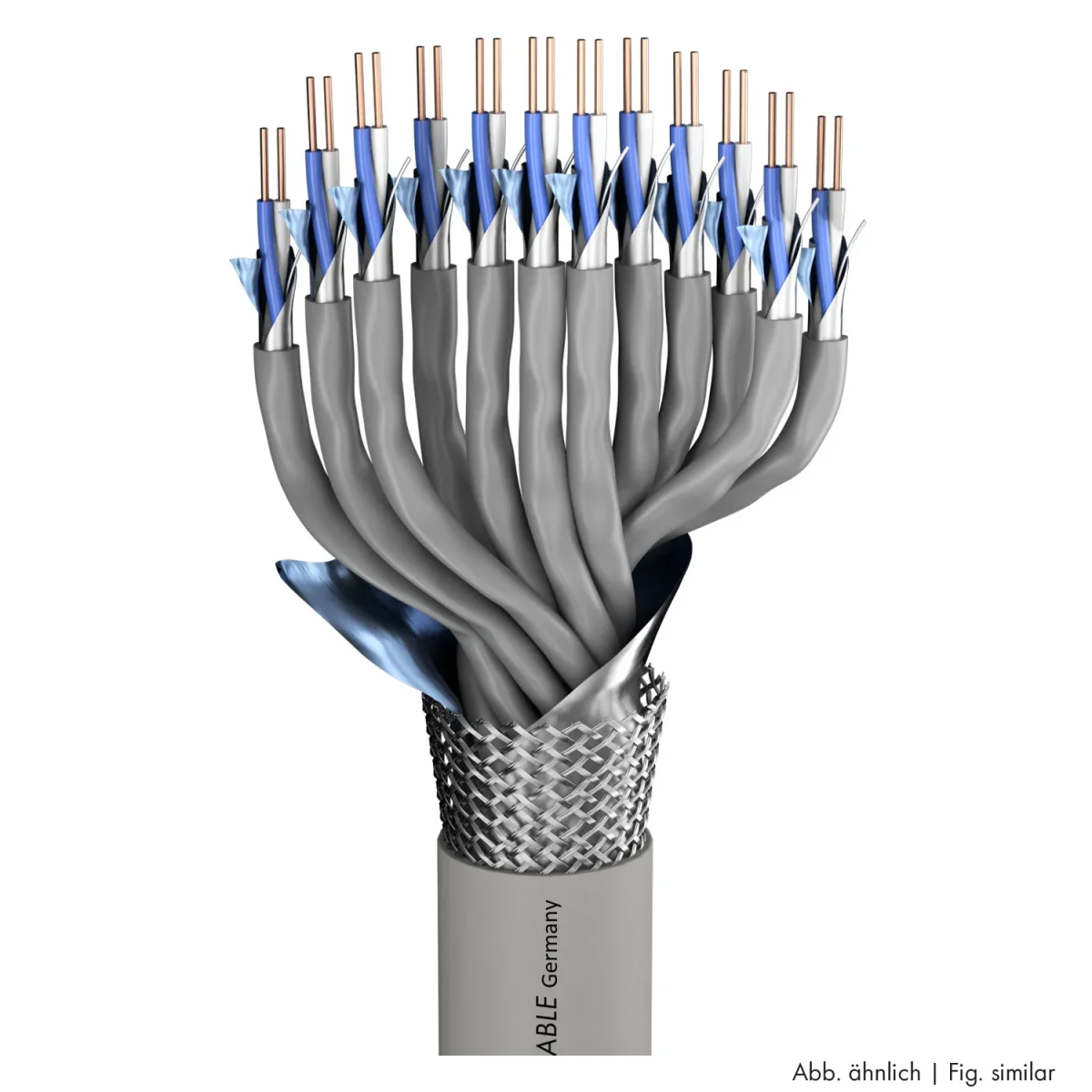 Das Multipairkabel LOGICABLE garantiert umwerfend gute elektrische Daten (Kapazität Ader/Ader 43 pF/m), eine hervorragende Gesamtschirmung (Cu-Geflecht + Alufolie), einen halogenfreien und auch flammwidrigen Mantel nach der höchsten Schutzklasse (FRNC-IEC60332.3, Prüfart C) und einzeln isolierte, nummerierte und geschirmte Adernpaare (PiMF). Der Vorteil von Massivdrahtleitungen besteht darin, dass man mit recht einfachen Mitteln sehr gute Dämpfungswerte und eine niedrige Kapazität erreicht, die wiederum bei den großen Lauflängen dieser Kabel sehr wichtig ist. Außerdem ist ein optimaler Anschluss auf LSA + Leisten möglich.