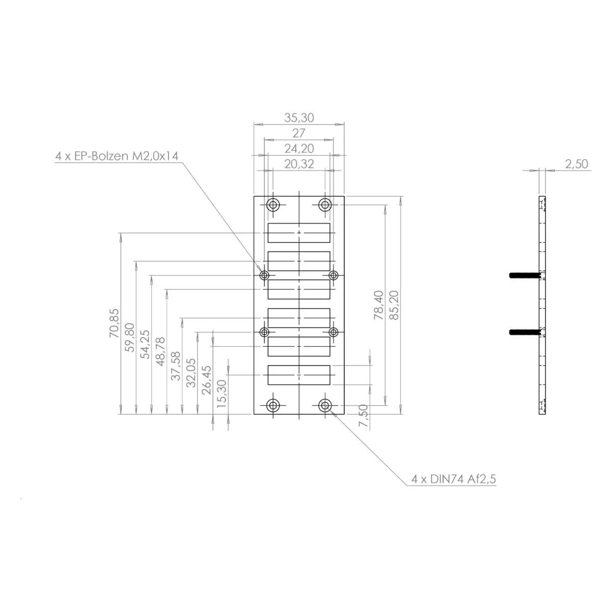 | Ausführung | 6 x Stanzung 24,2x7,5 |