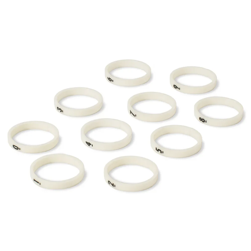 10 Ringe, je ein Ring mit Nummer von „0“ – „9“