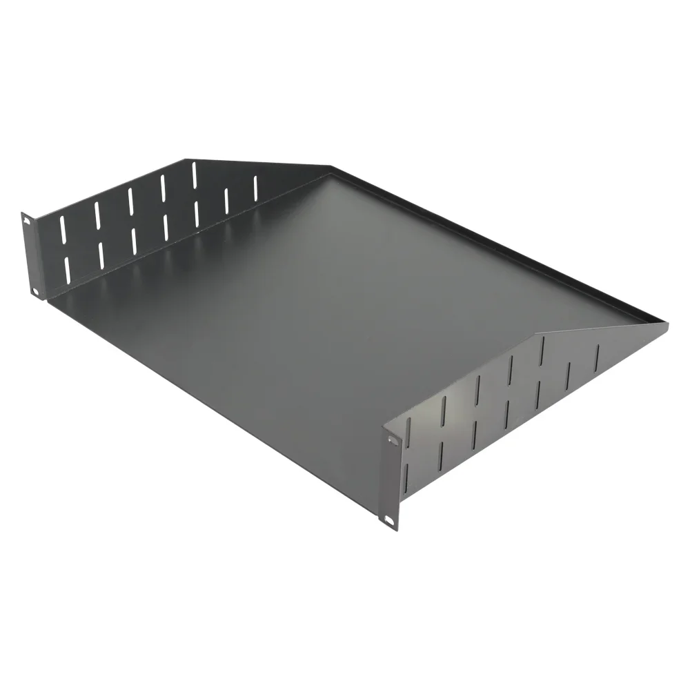 Der Rackeinschub VARIOS REF19 im typischen Sommer cable anthrazit ist aus verwindungsfreien 1,5 mm Stahlblech und trägt auch Geräte über 15 kg. Als einfachere Variante bieten wir einen 19“ Rack-Stellboden an.