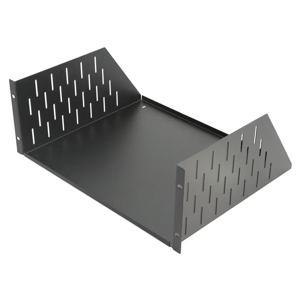 Der Rackeinschub VARIOS REF19 im typischen Sommer cable anthrazit ist aus verwindungsfreien 1,5 mm Stahlblech und trägt auch Geräte über 15 kg. Als einfachere Variante bieten wir einen 19“ Rack-Stellboden an.