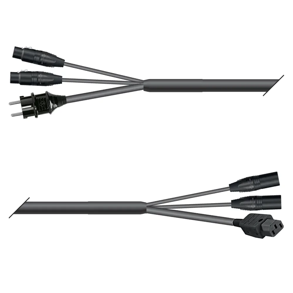 für die einfache Vernetzung von Geräten, die sowohl DMX-Signal, als auch 230 V Netzspannung benötigen (z.B. DMX-Nebelmaschinen, Moving-Lights usw.). Unser digitales DMX512 Multipair-Kombikabel SC-MONOLITH 1 bestücken wir einerseits mit einem MENNEKES Schukostecker bzw. powerCON® Verbinder und einem XLR 3-pol bzw. 5-pol Verbinder von NEUTRIK® – und an der Gegenseite mit einer MENNEKES Schukobuchse, Kaltgerätebuchse bzw. powerCON® NAC3FCB und einem XLR 3-pol bzw. 5-pol Verbinder. Als Bildbeispiele sehen Sie die Versionen MHDC-00/01 und MHDF-00/01. Unsere DMX Kabel besitzen sehr niedrige Kapazitätswerte und eignen sich dadurch auch hervorragend für die Audio- bzw. AES/EBU 110 O-Übertragung.