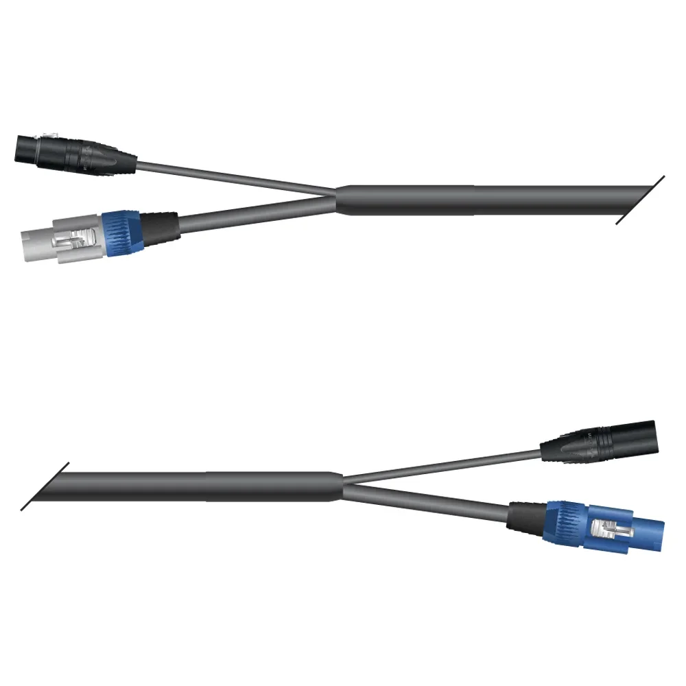 für die einfache Vernetzung von Geräten, die sowohl DMX-Signal, als auch 230 V Netzspannung benötigen (z.B. DMX-Nebelmaschinen, Moving-Lights usw.). Unser digitales DMX512 Multipair-Kombikabel SC-MONOLITH 1 bestücken wir einerseits mit einem MENNEKES Schukostecker bzw. powerCON® Verbinder und einem XLR 3-pol bzw. 5-pol Verbinder von NEUTRIK® – und an der Gegenseite mit einer MENNEKES Schukobuchse, Kaltgerätebuchse bzw. powerCON® NAC3FCB und einem XLR 3-pol bzw. 5-pol Verbinder. Als Bildbeispiele sehen Sie die Versionen MHDC-00/01 und MHDF-00/01. Unsere DMX Kabel besitzen sehr niedrige Kapazitätswerte und eignen sich dadurch auch hervorragend für die Audio- bzw. AES/EBU 110 O-Übertragung.