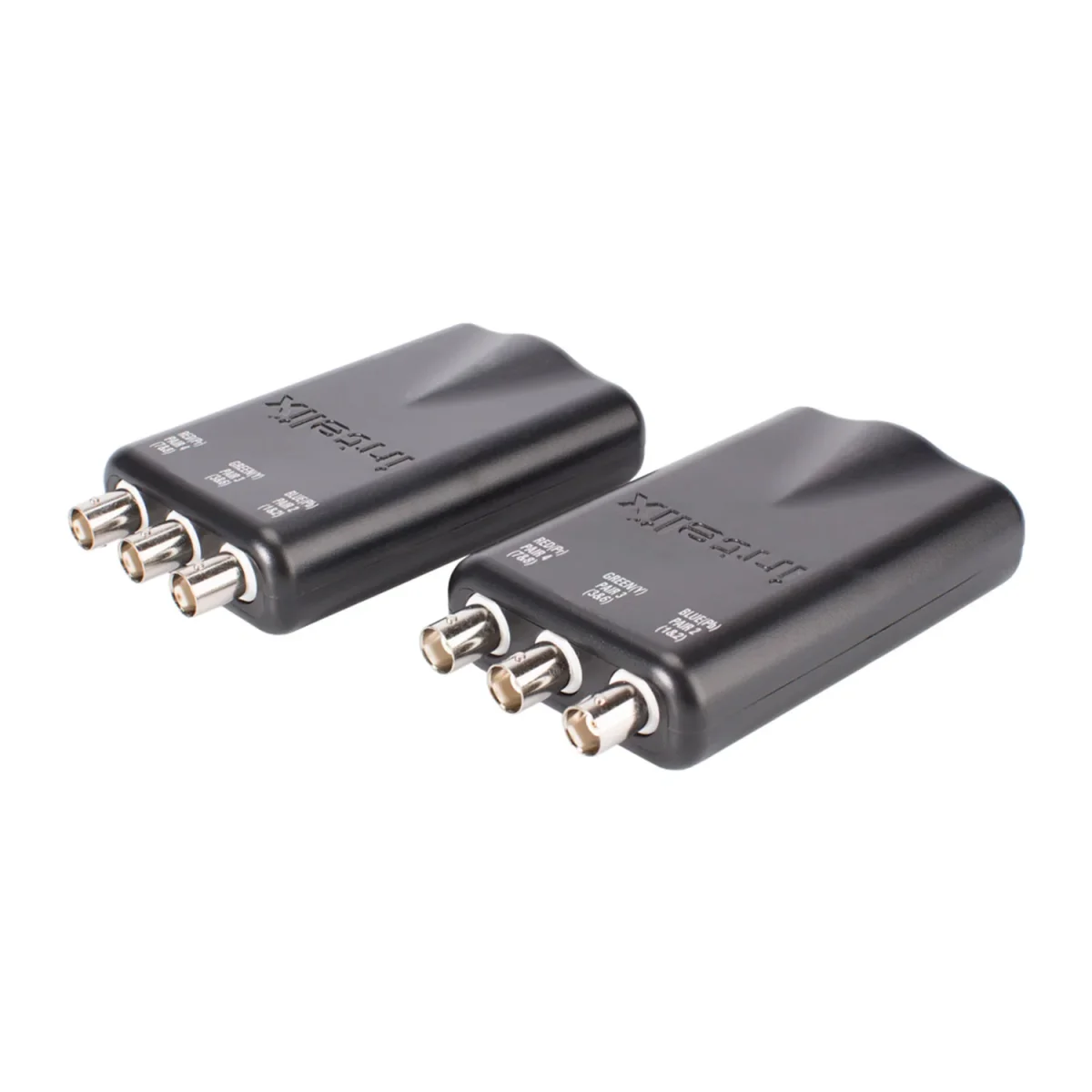 Übertragung von Video- (und Audio-) Signalen über Twisted-Pair-Kabel. Benötigt werden immer 2 Geräte. (Sender & Empfänger sind identisch). Bei einigen Produkten bieten wir 2er Sets an (Siehe Bestellnummern mit „-PAC” am Ende).