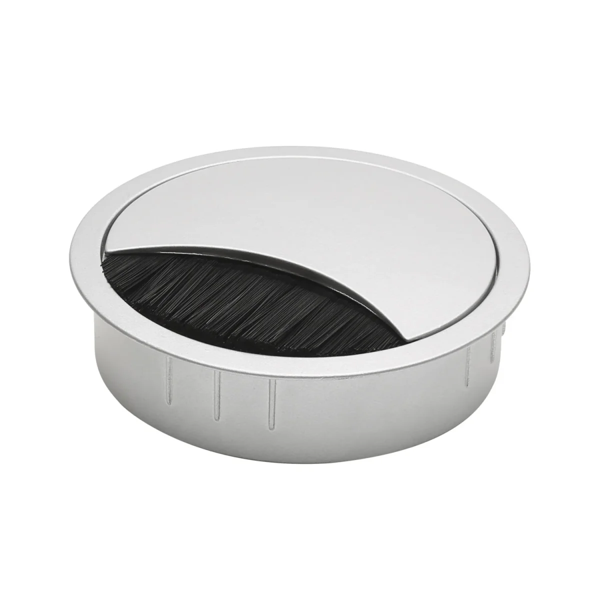 Lassen Sie mit unserer schlichten und modernen Kabeldurchführung störende Leitungen auf Ihrem Schreibtisch schnell und unkompliziert verschwinden. Eine einfache Standard-Ausbohrung mit 80 mm Durchmesser reicht aus und Sie haben geordnete Verhältnisse – zumindest in Sachen Kabelverbindungen. Der halbmondförmige Ausschnitt bietet ausreichend Platz für mehrere Kabel und ist mit einer integrierten Bürstenleiste abgedeckt und geschützt.