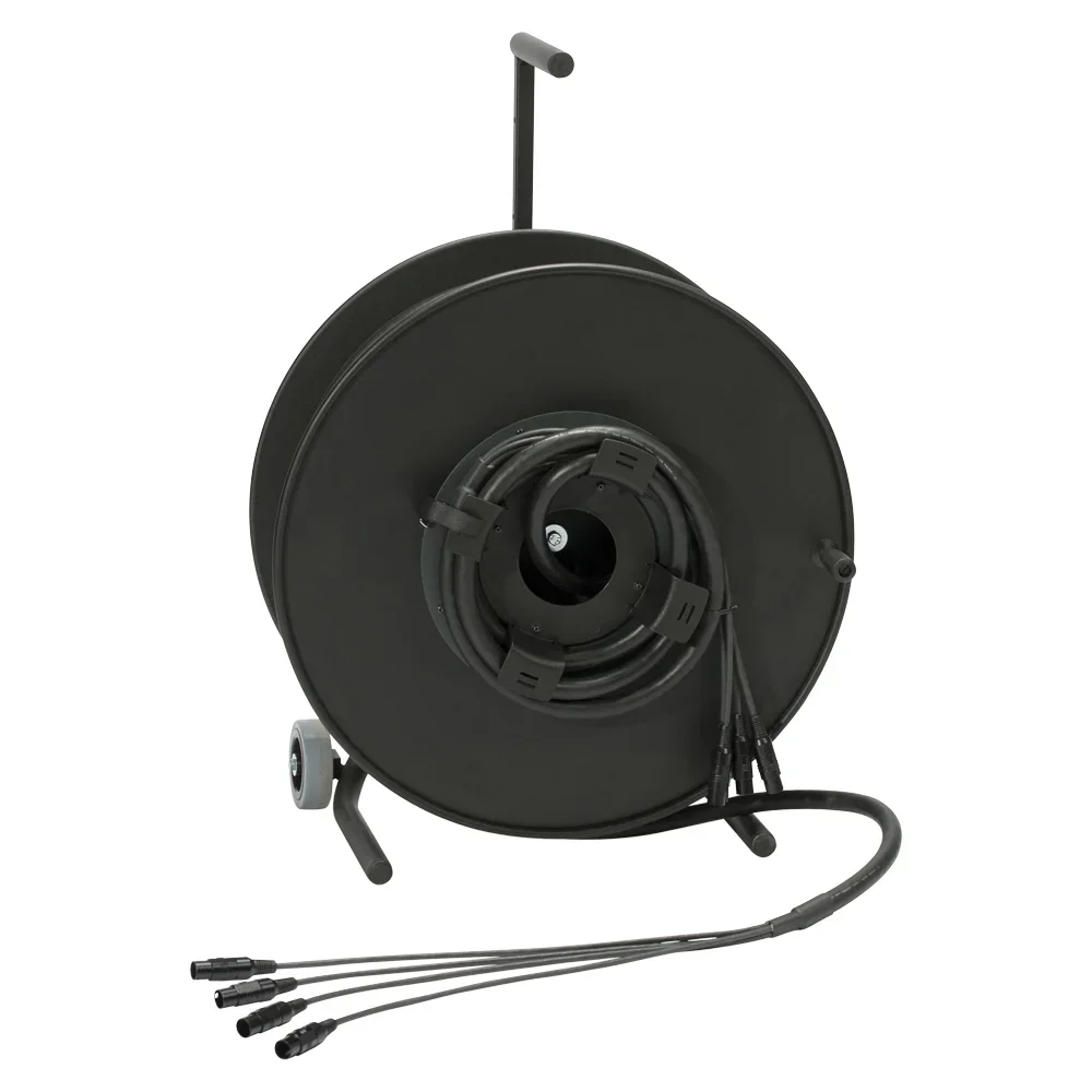 Gleich vier CAT.7-Leitungen sind hier in einem hochflexiblen und robusten Strong-PVC-Mantel zusammengefasst. Damit können bis zu 4 High-Speed-Ethernet oder kompatible Signale auf einmal übertragen werden. Wir bieten das Kabel konfektioniert mit Verbindern sowie zusätzlich mit Schutzgehäuse von HICON. Alternativ sind die Leitungen auch auf Trommel erhältlich. Wie liefern eine leichte und sehr robuste Kabeltrommel HT582 von SCHILL.