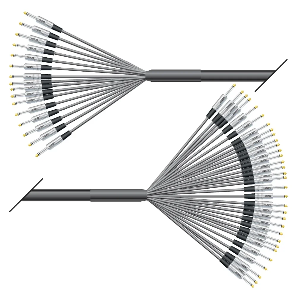 Die folgenden Kabel sind spezielle Insert Looms für Mischpulte mit unsymmetrischen Inserts, d.h. Send und Return sind auf einer gemeinsamen Stereoklinkenbuchse im Mischpult vorhanden. Um diese dann mit einem Effektgerät zu verbinden, muss man das Signal auf 2 einzelne Stecker verteilen. Genau das machen unsere Looms. Dies bedeutet unweigerlich, dass auf einer Seite z.B. 8 Stereoklinken sind, auf der anderen Seiten dann passend dazu 16 Monoklinken. Oder die andere Seite ist mit 8 XLR male und 8 XLR female versehen.