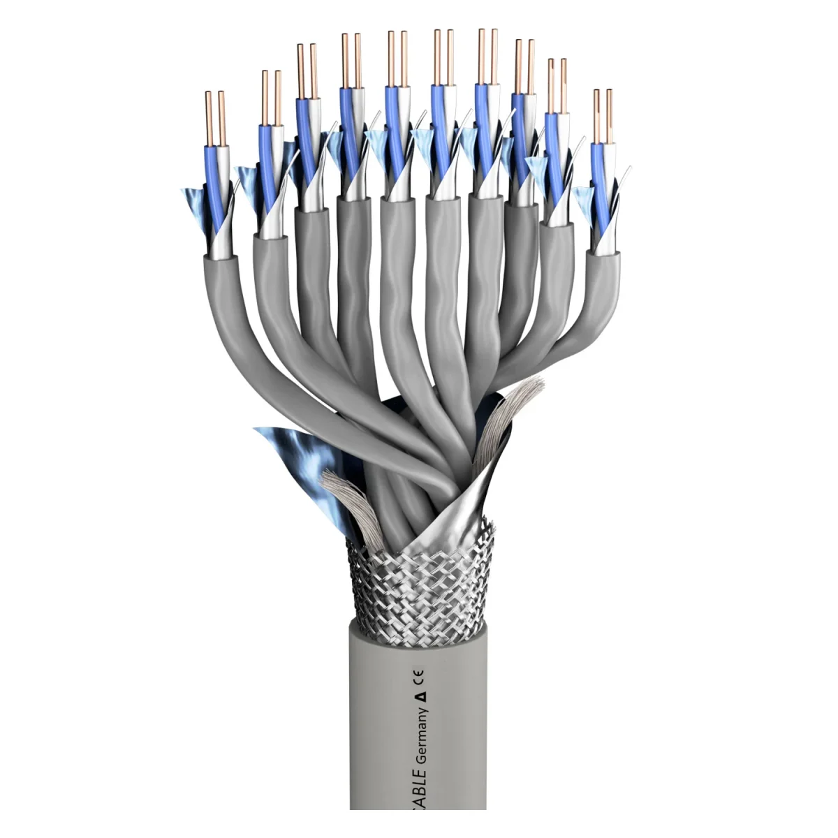 Das Multipairkabel LOGICABLE garantiert umwerfend gute elektrische Daten (Kapazität Ader/Ader 43 pF/m), eine hervorragende Gesamtschirmung (Cu-Geflecht + Alufolie), einen halogenfreien und auch flammwidrigen Mantel nach der höchsten Schutzklasse (FRNC-IEC60332.3, Prüfart C) und einzeln isolierte, nummerierte und geschirmte Adernpaare (PiMF). Der Vorteil von Massivdrahtleitungen besteht darin, dass man mit recht einfachen Mitteln sehr gute Dämpfungswerte und eine niedrige Kapazität erreicht, die wiederum bei den großen Lauflängen dieser Kabel sehr wichtig ist. Außerdem ist ein optimaler Anschluss auf LSA + Leisten möglich.