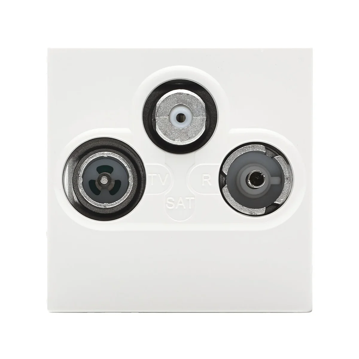 SYSWALL45 Antennen-Steckdose, 3-LochPlatte: 45x45mm Clip-IN-TechnikFarbe: weiß hochglänzend3 Loch Stichdose für Antennen-, BK- und Satelitenempfangs-AnlagenFrequenz: 5-2050 MHz