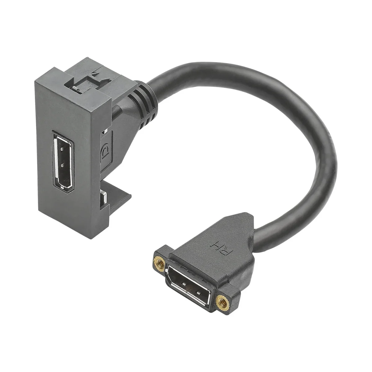 SYSWALL45 DISPLAYPORT -> KabelbuchsePlatte: 22,5x45mm Clip-IN-TechnikFarbe: anthrazit matt---------------------------------Anschlüsse Vorderseite:1x DISPLAYPORT female---------------------------------Anschlüsse Rückseite:1x DP Kabelbuchse, 80° nachob…