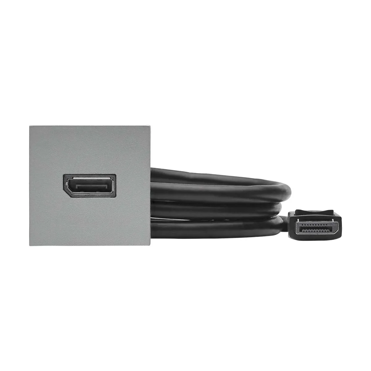 SYSWALL45 DISPLAYPORT -> KabelsteckerPlatte: 45x45mm Clip-IN-TechnikFarbe: silber lackiert ---------------------------------Anschlüsse Vorderseite:1x DISPLAYPORT female---------------------------------Anschlüsse Rückseite:1x DP Kabelstecker L=1,0m