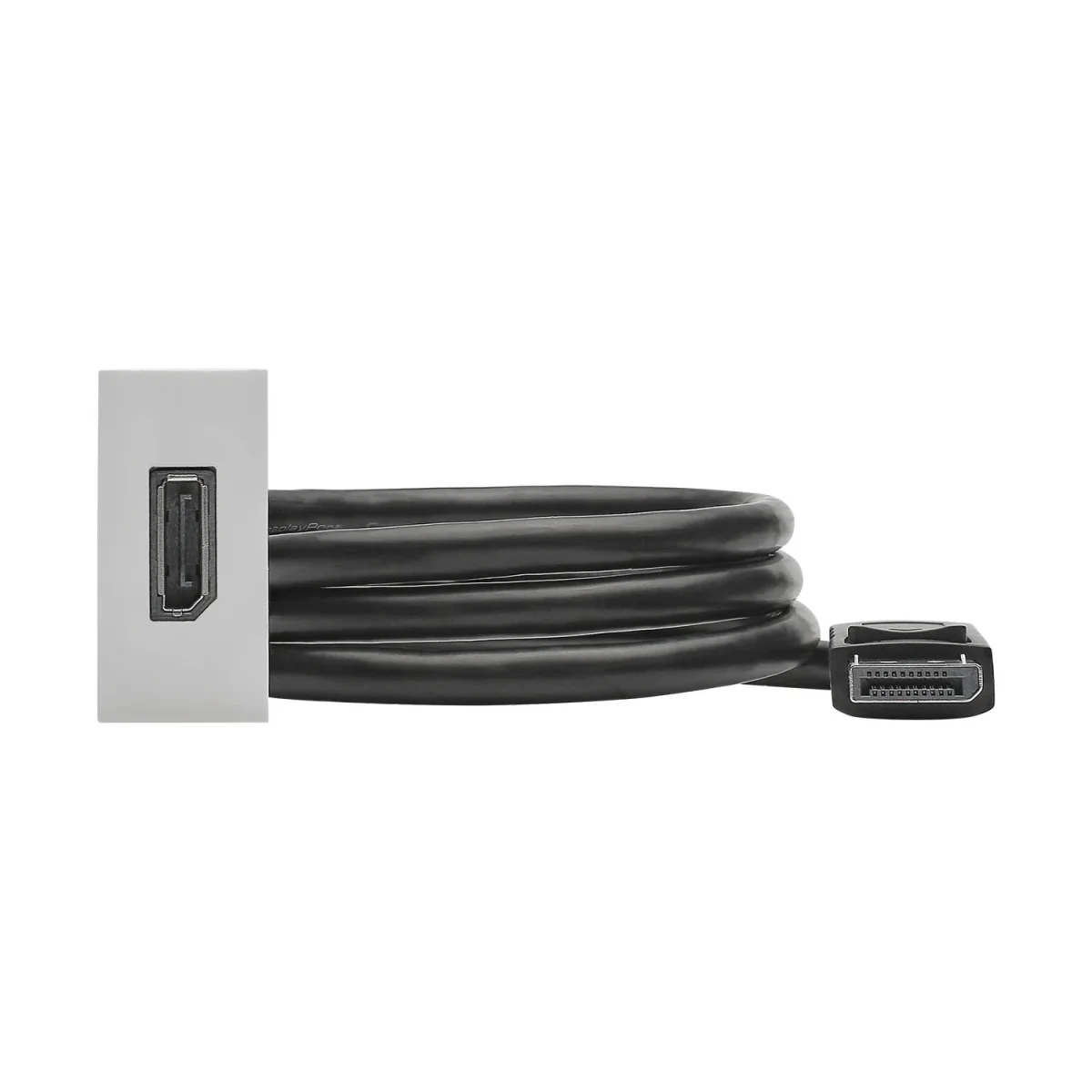SYSWALL45 DISPLAYPORT -> KabelsteckerPlatte: 22,5x45mm Clip-IN-TechnikFarbe: silber lackiert ---------------------------------Anschlüsse Vorderseite:1x DISPLAYPORT female---------------------------------Anschlüsse Rückseite:1x DP Kabelstecker L=1,0m
