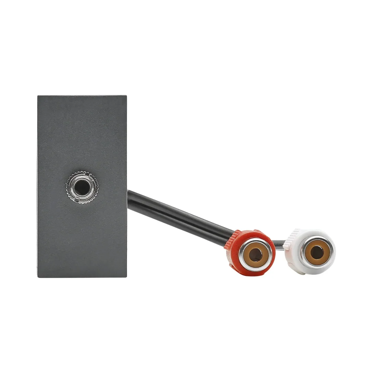 SYSWALL45 Miniklinke St. -> KabelbuchsenPlatte: 22,5x45mm Clip-IN-TechnikFarbe: anthrazit matt---------------------------------Anschlüsse Vorderseite:1x 3,5mm Klinkenbuchse Stereo---------------------------------Anschlüsse Rückseite:2x Cinch-Kabelbuc…