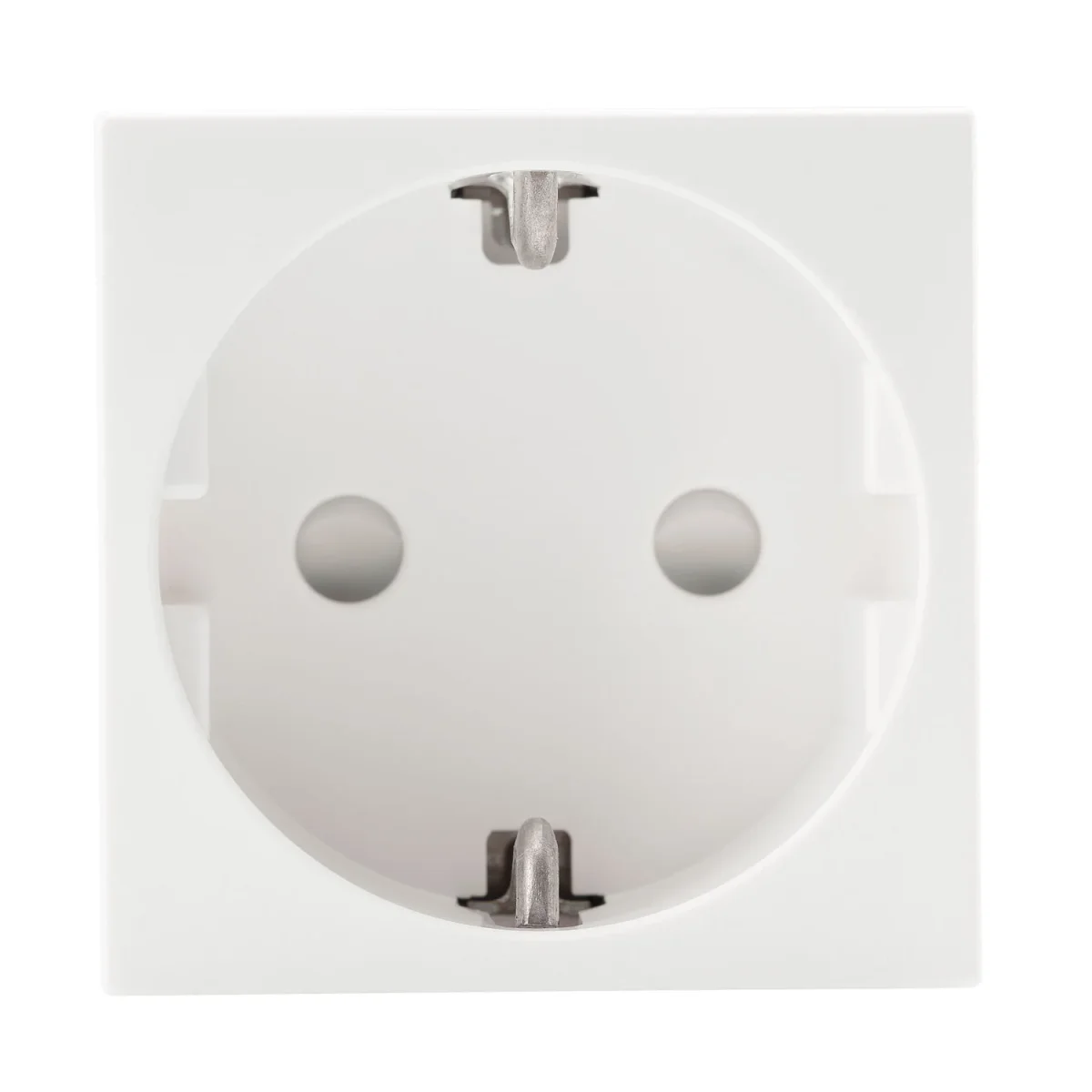 SYSWALL45 SCHUKO-Steckdose 1fachPlatte: 45x45mm Clip-IN-TechnikFarbe: reinweiß, RAL9010bis zu 2,5mm² Massivinnenleiter!