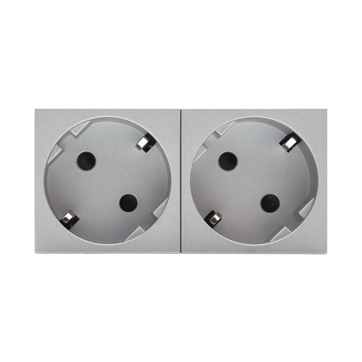 SYSWALL45 SCHUKO-Steckdose 2fachPlatte: 90x45mm Clip-IN-TechnikFarbe: silber lackiert -Steckdosen 45° mit hinten liegenden Anschlussklemmen-Zugang und Abgang bis 2,5 mm2-45° verdreht-erhöhter Berührungsschutz-Stoßfestigkeitsgrad IK07