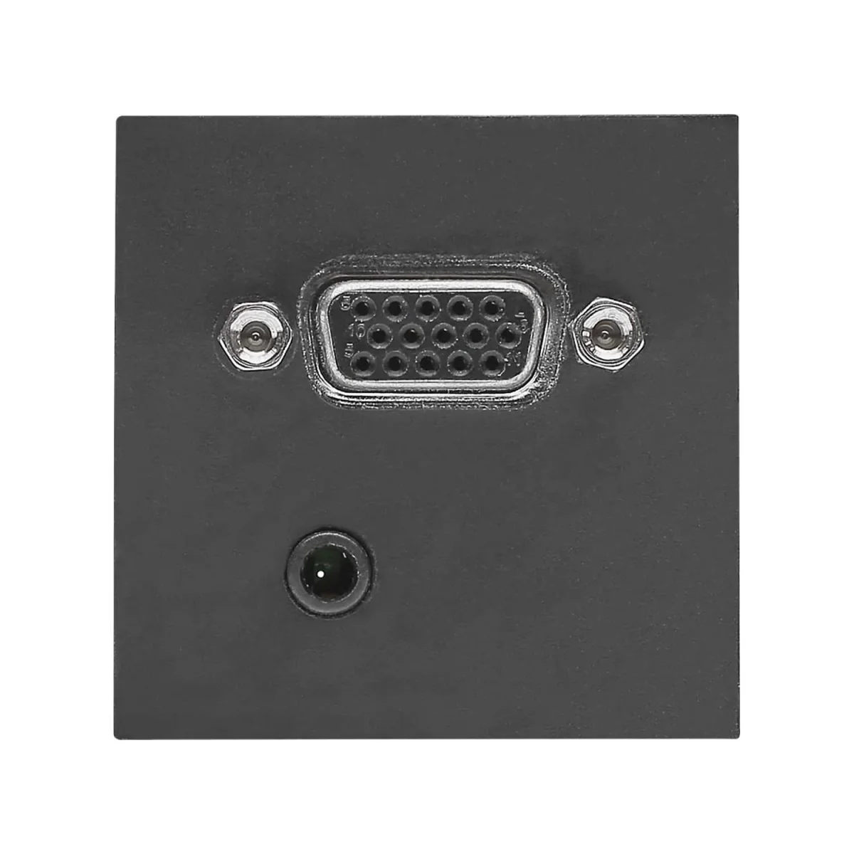 SYSWALL45 VGA+Minikl. -> KlemmblockPlatte: 45x45mm Clip-IN-TechnikFarbe: schwarz matt---------------------------------Anschlüsse Vorderseite:1x VGA female1x 3,5mm Klinkenbuchse---------------------------------Anschlüsse Rückseite:1x 15fach Aufzugs-Kl…