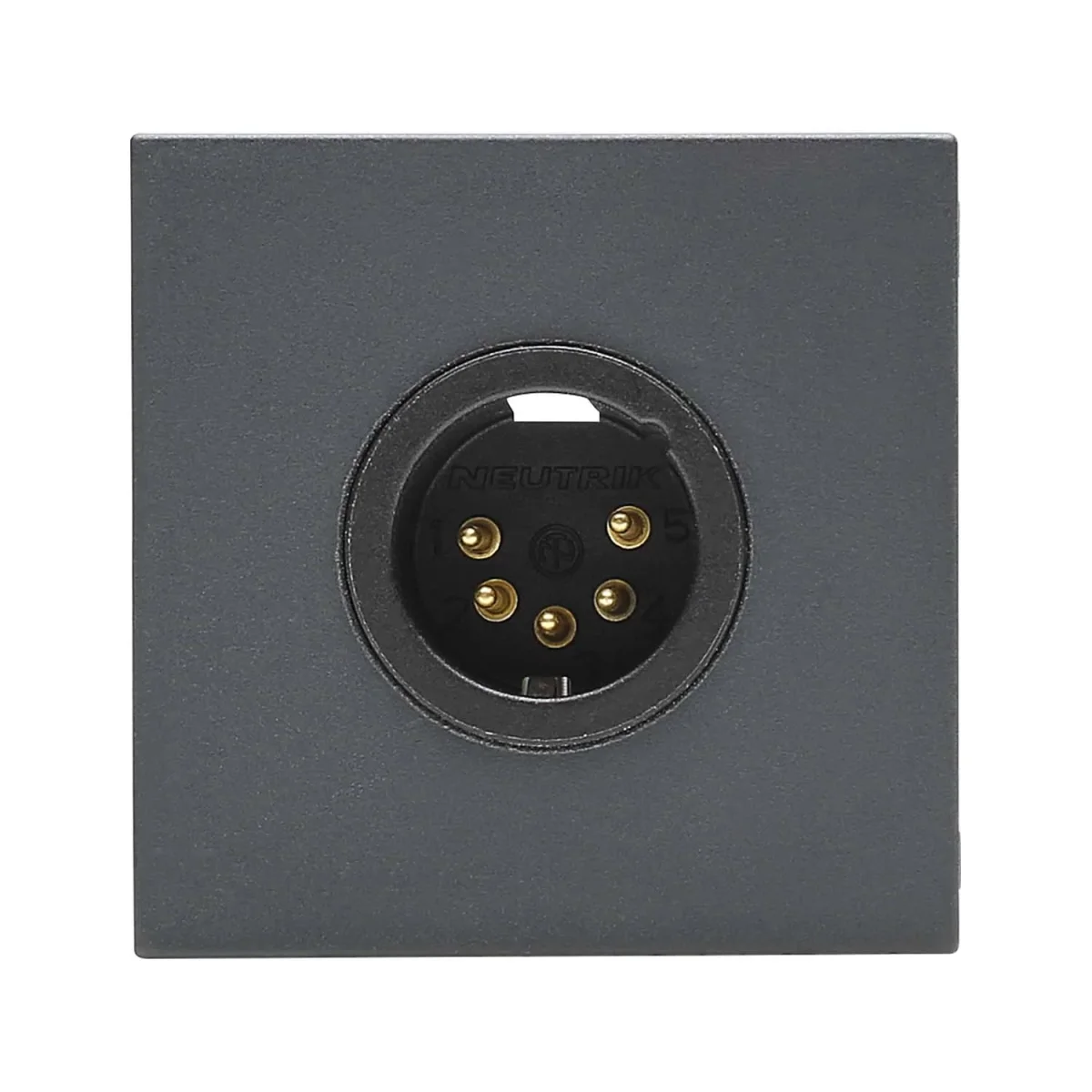 SYSWALL45 XLR 5p male -> KlemmblockPlatte: 45x45mm Clip-IN-TechnikFarbe: anthrazit ---------------------------------Anschlüsse Vorderseite:1x XLR 5pin male (NEUTRIK NC5MA)---------------------------------Anschlüsse Rückseite:1x 3fach Aufzugs-Kl…