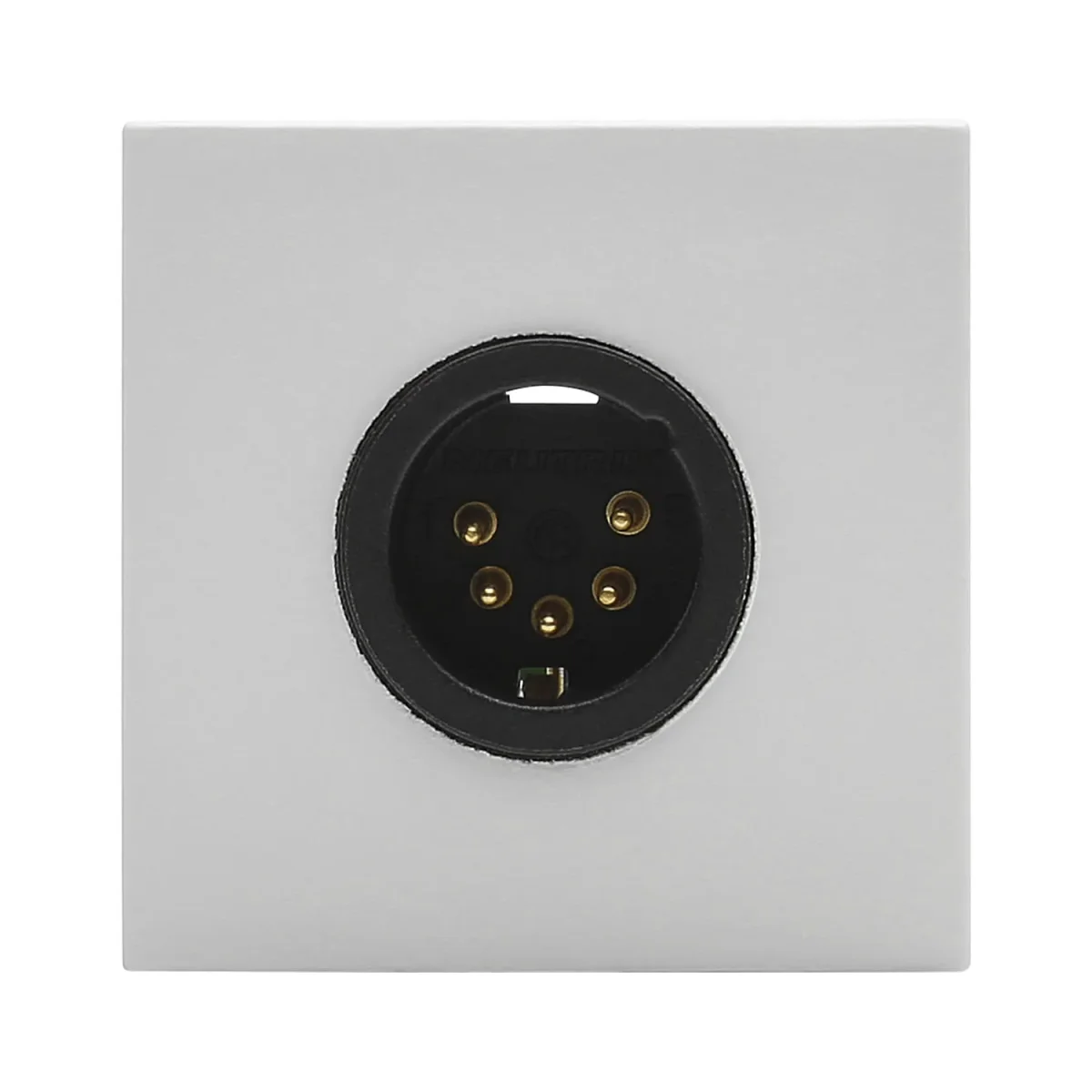SYSWALL45 XLR 5p male -> KlemmblockPlatte: 45x45mm Clip-IN-TechnikFarbe: reinweiß RAL9010---------------------------------Anschlüsse Vorderseite:1x XLR 5pin male (NEUTRIK NC5MA)---------------------------------Anschlüsse Rückseite:1x 3fach Aufzugs-Kl…