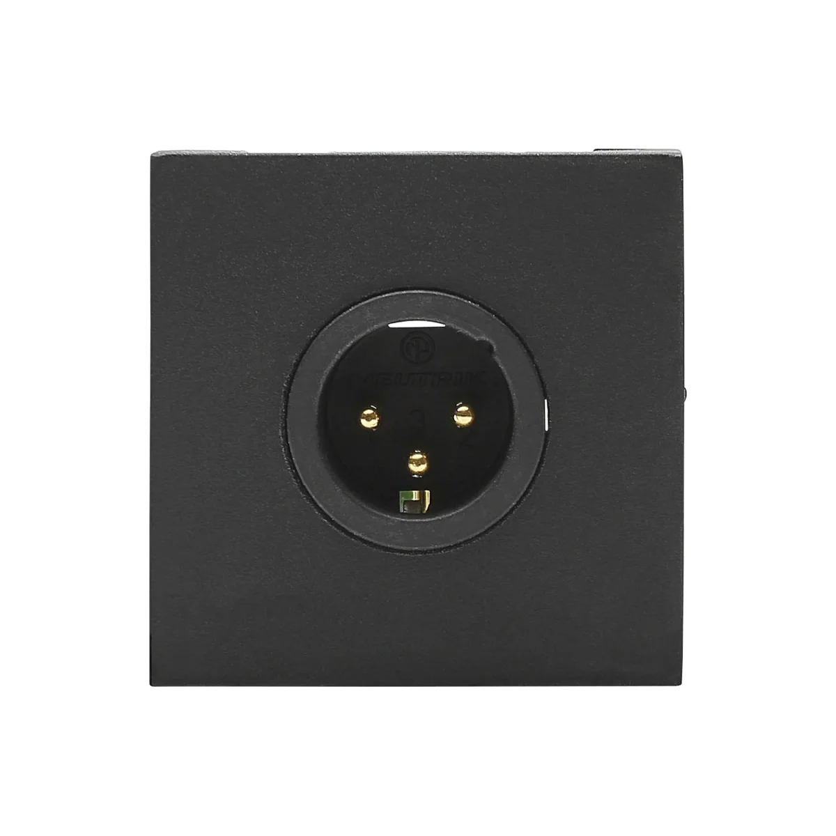 SYSWALL45 XLR male -> KlemmblockPlatte: 45x45mm Clip-IN-TechnikFarbe: schwarz matt---------------------------------Anschlüsse Vorderseite:1x XLR male (NEUTRIK NC3MA)---------------------------------Anschlüsse Rückseite:1x 3fach Aufzugs-Klemmblock